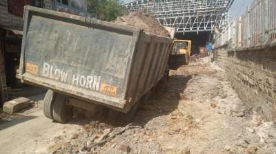 कोचिंग डिपो के सामने बड़ा हादसा टला: पाइप लाइन के गड्ढे में फंसा डम्पर, मची अफरा-तफरी।