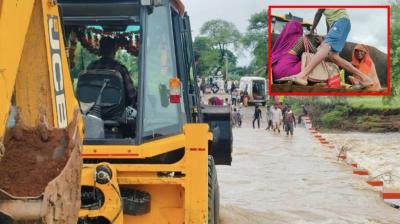गर्भवती को जेसीबी से पार कराया गया नाला, प्रशासनिक लापरवाही पर उठे सवाल