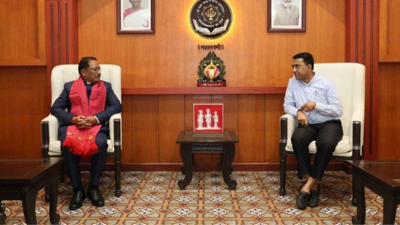 CG News: सीएम विष्णु देव साय दो दिन के गोवा दौरे पर हैं. जहां 8 जनवरी को वे गोवा पहुंचे, उन्होंने गोवा के मुख्यमंत्री डॉ. प्रमोद सावंत से की सौजन्य मुलाकात की. दोनों मुख्यमंत्रियों के बीच आपसी सहयोग और साझा हितों से जुड़े विषयों पर बातचीत हुई.