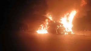 मैहर हाईवे पर बड़ा हादसा टला, चिंगारी से बस बनी आग का गोला
