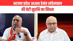 भाजपा प्रदेश अध्यक्ष हेमंत खंडेलवाल की पुत्री के निधन से राजनीतिक जगत शोकाकुल
