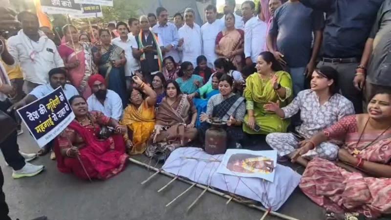 दुर्ग में गैस सिलेंडर कीमत बढ़ोतरी पर कांग्रेस का विरोध
