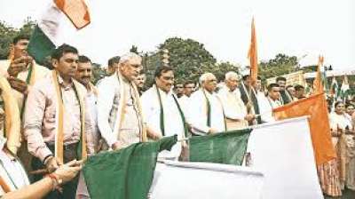 राजकोट । गुजरात के राजकोट में आज केंद्रीय मंत्री और भाजपा अध्यक्ष जेपी नड्डा और गुजरात के मुख्यमंत्री भूपेंद्र पटेल ने अन्य नेताओं के साथ मिलकर तिरंगा झंडा को हरी झंडी...