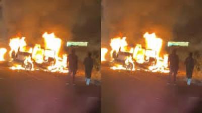रफ्तार बनी मौत का कारण: टक्कर के बाद वाहन में लगी आग, तीन की दर्दनाक मौत