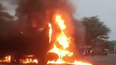 राजस्थान: बस-ट्रक टक्कर के बाद आग का गोला बनी बस