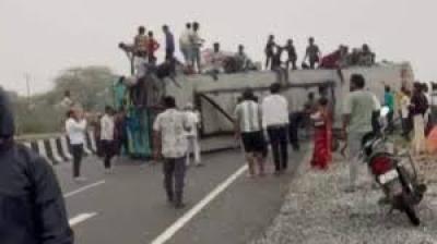 अजमेर में दर्दनाक हादसा, स्लीपर बस पलटी; चालक की जान गई, 20 से ज्यादा घायल